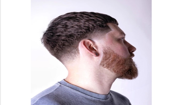 This technique works well with beards of all lengths and not only adds to a voluminous and lengthened appearance. Notably, this style removes sideburns while cleverly reinstating a gentle taper that blends into facial hair, resulting in a polished and uniform appearance.